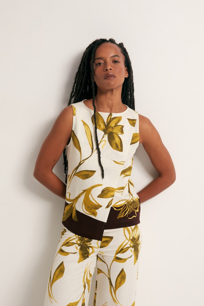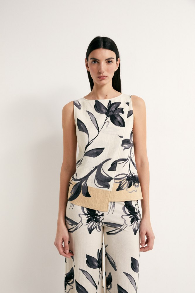 Printed linen top