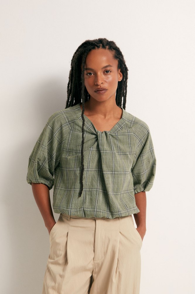 Green checked blouse