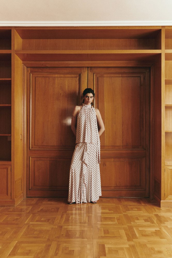 Polka-dot haterneck blouse