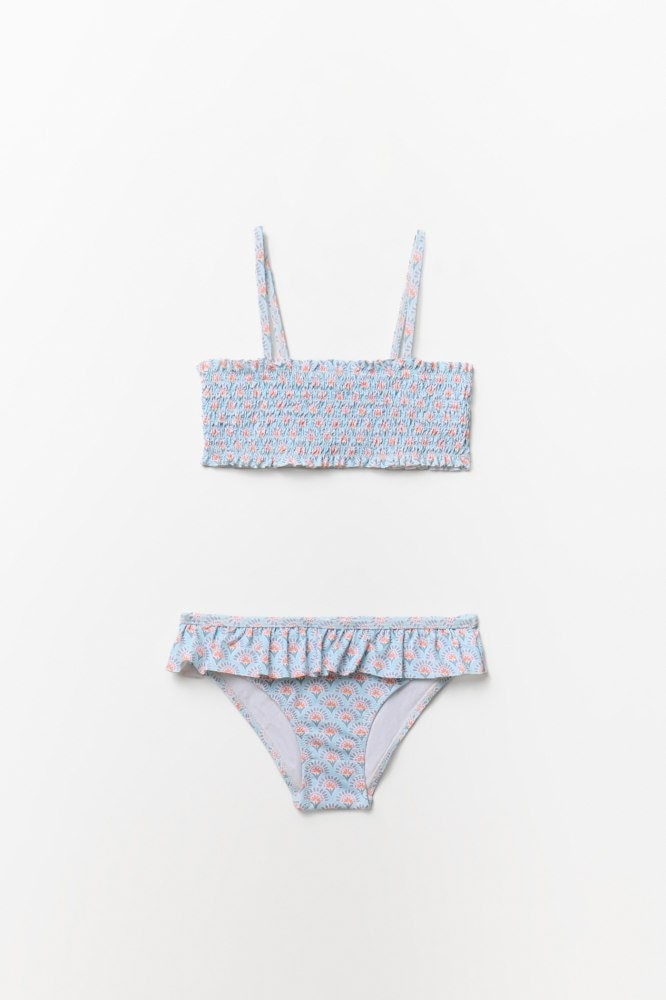 Smocked floral-print bikini set