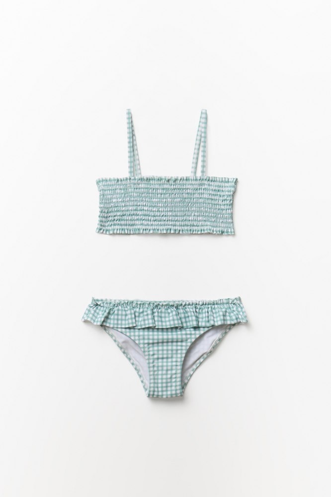 Smocked gingham bikini set