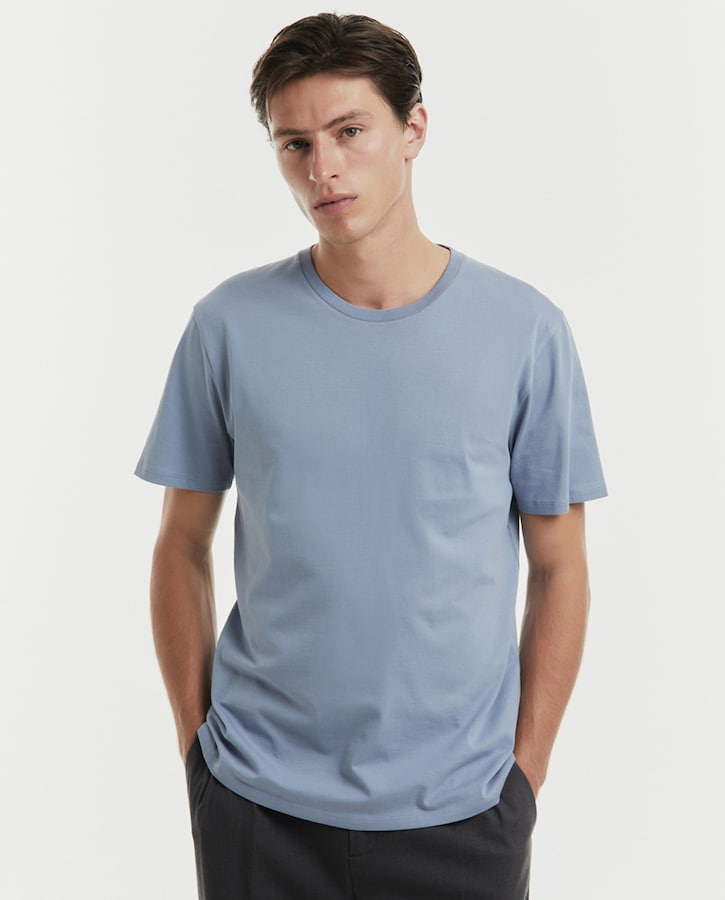 Camiseta manga corta lisa con cuello caja. Algodón 100%.