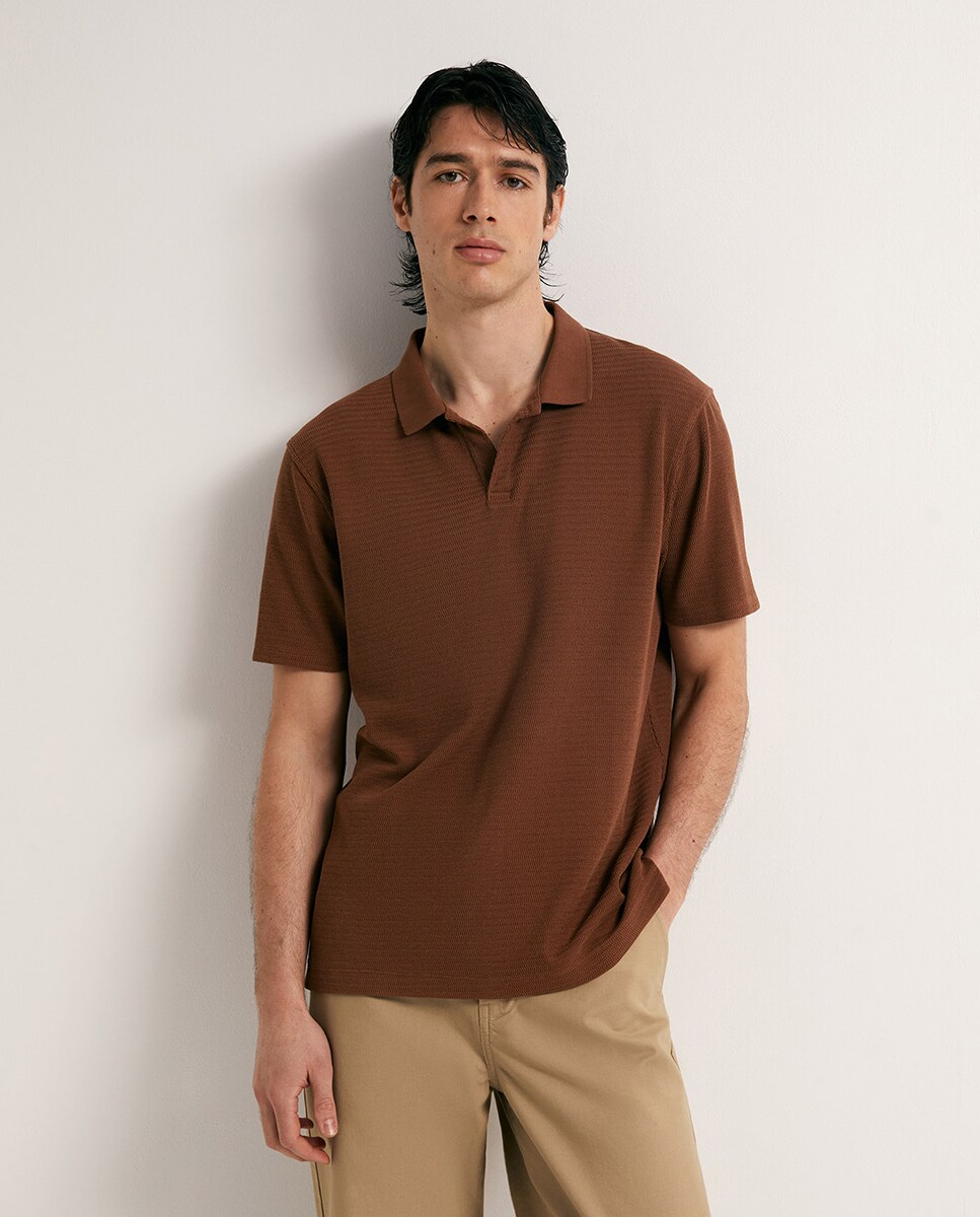 • Polo liso textura de manga corta