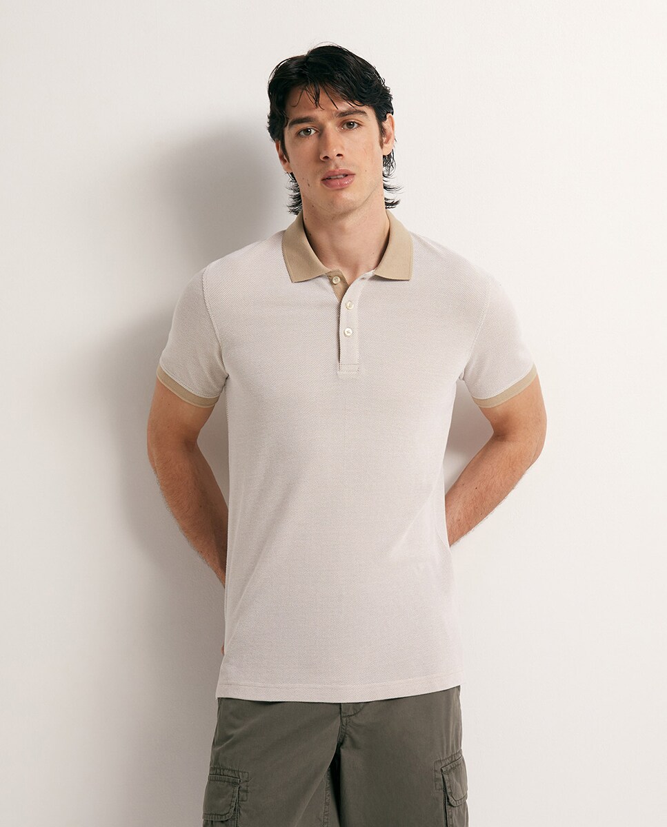 • Polo de manga corta con estructura piqué bicolor. Cuello solapa con cierre frontal de botonadura. Algodón 100% Geométrico.