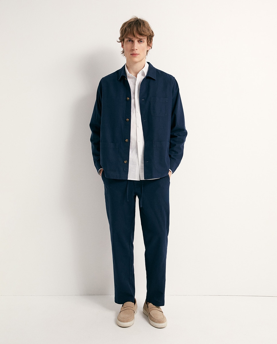 • Camisa de manga larga con bolsillos delanteros de plastrón y cierre de botones. Tejido en mezcla de lino y algodón
