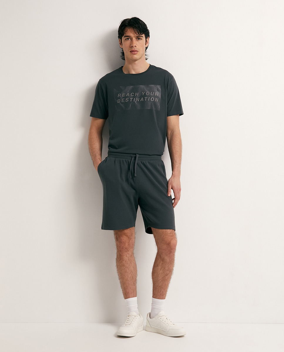 • Bermuda active con goma y cordones en cintura. Bolsillos delanteros