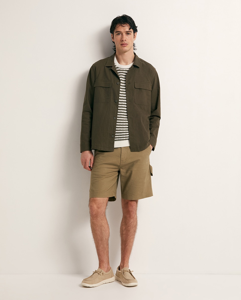 • Sobrecamisa bolsillos delanteros y cierre de botones. Mezcla de lino y algodón