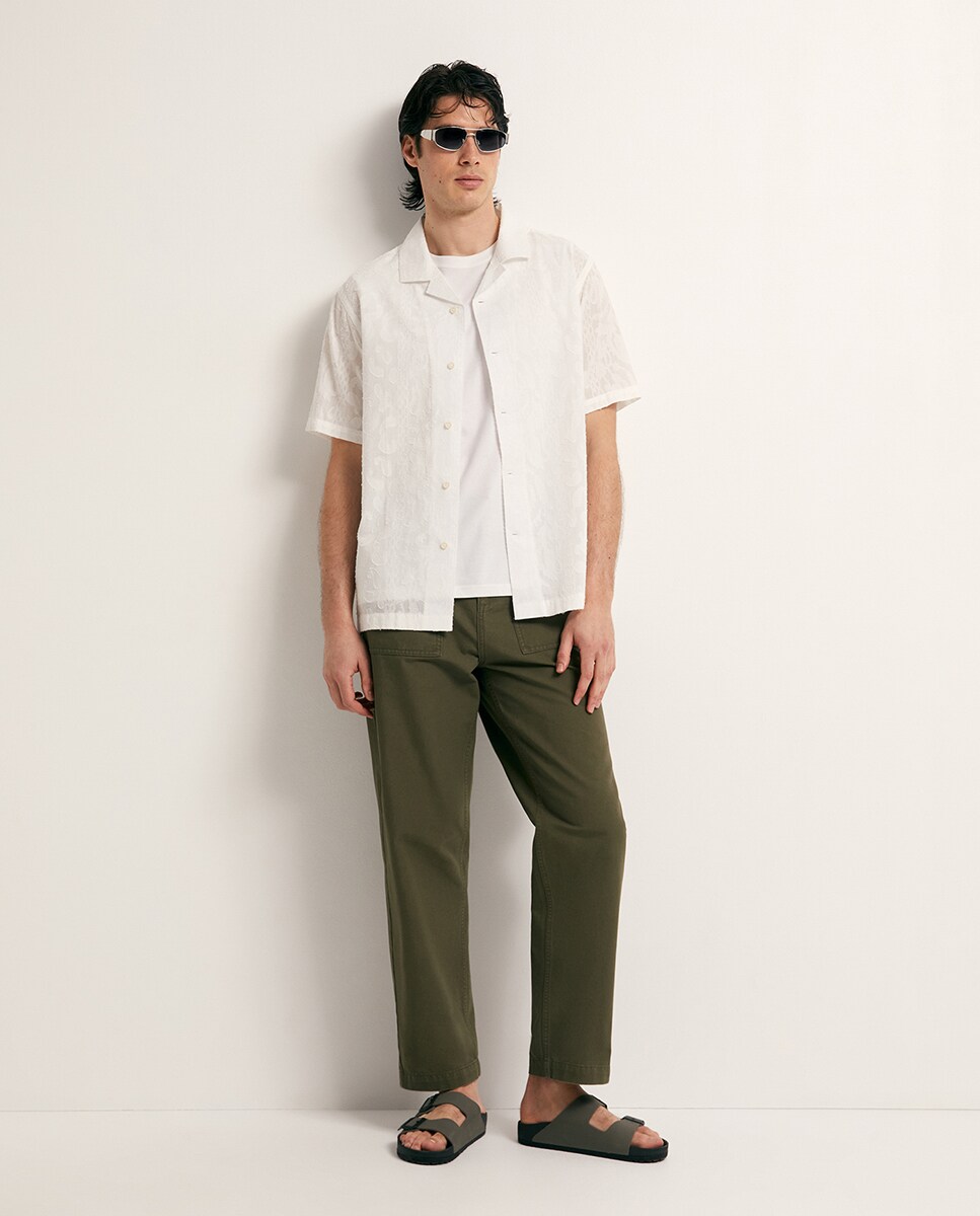• Camisa jacquard de manga corta y cierre de botones. Algodón 100%