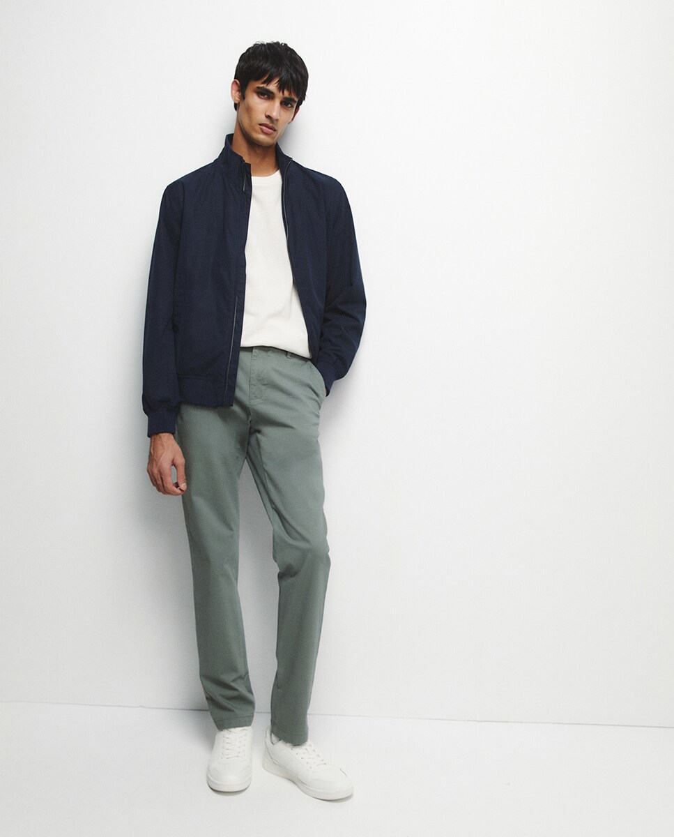 • Pantalón chino en algodón. Slim fit. Cierre mediante botón y cremallera