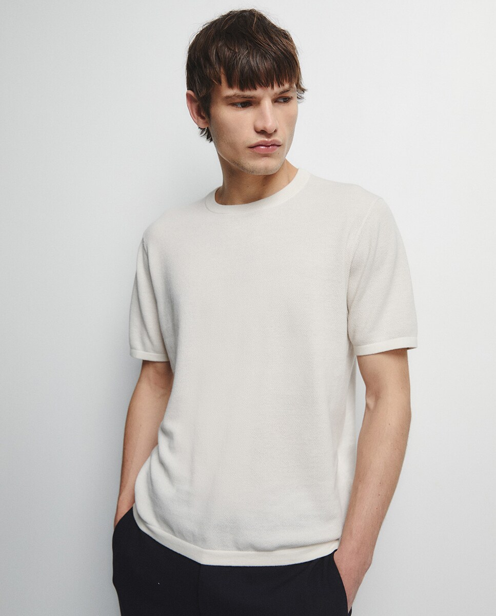 • Jersey con cuello redondo y manga corta liso. Algodón 100%