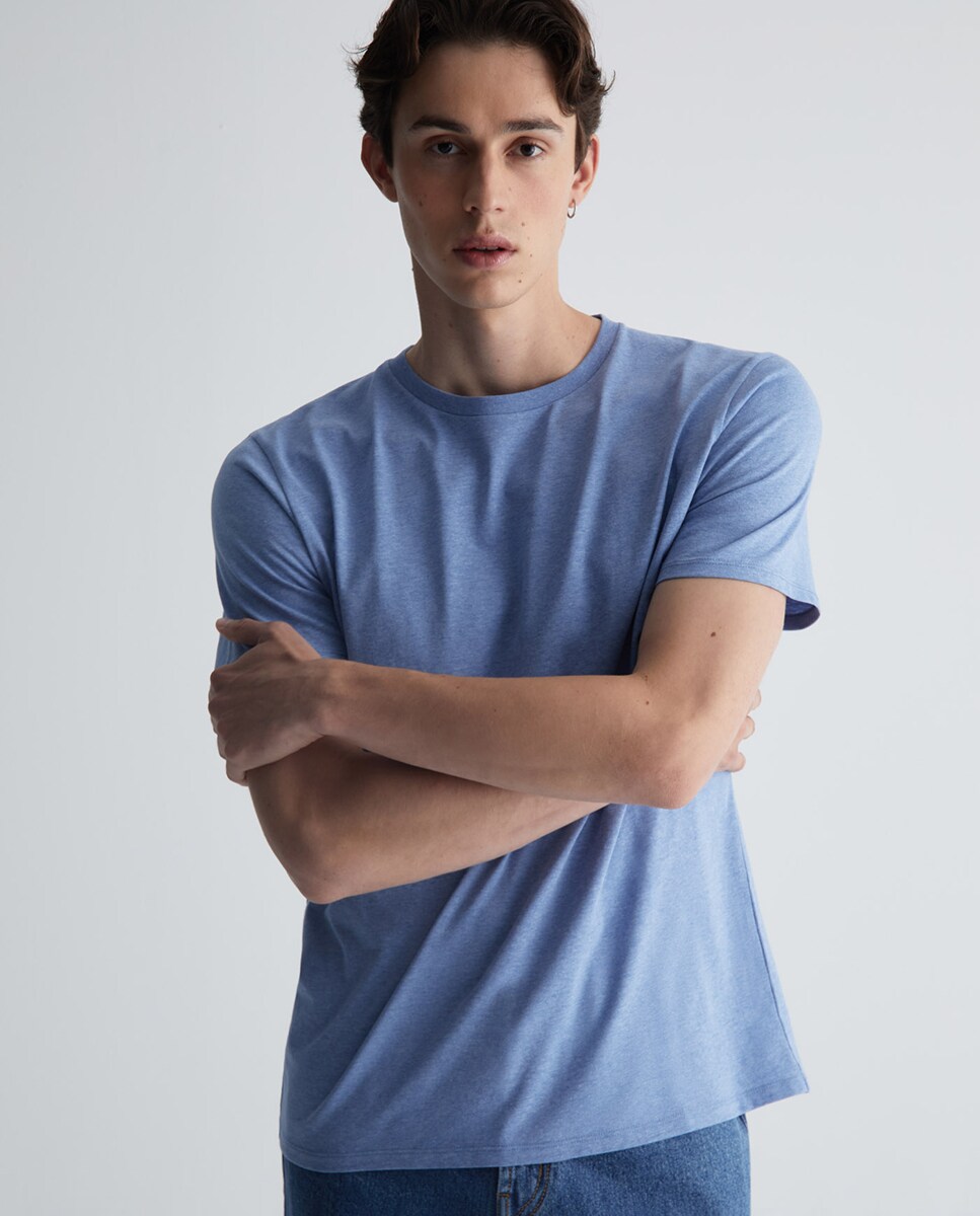 • Camiseta lisa de manga corta y cuello redondo
