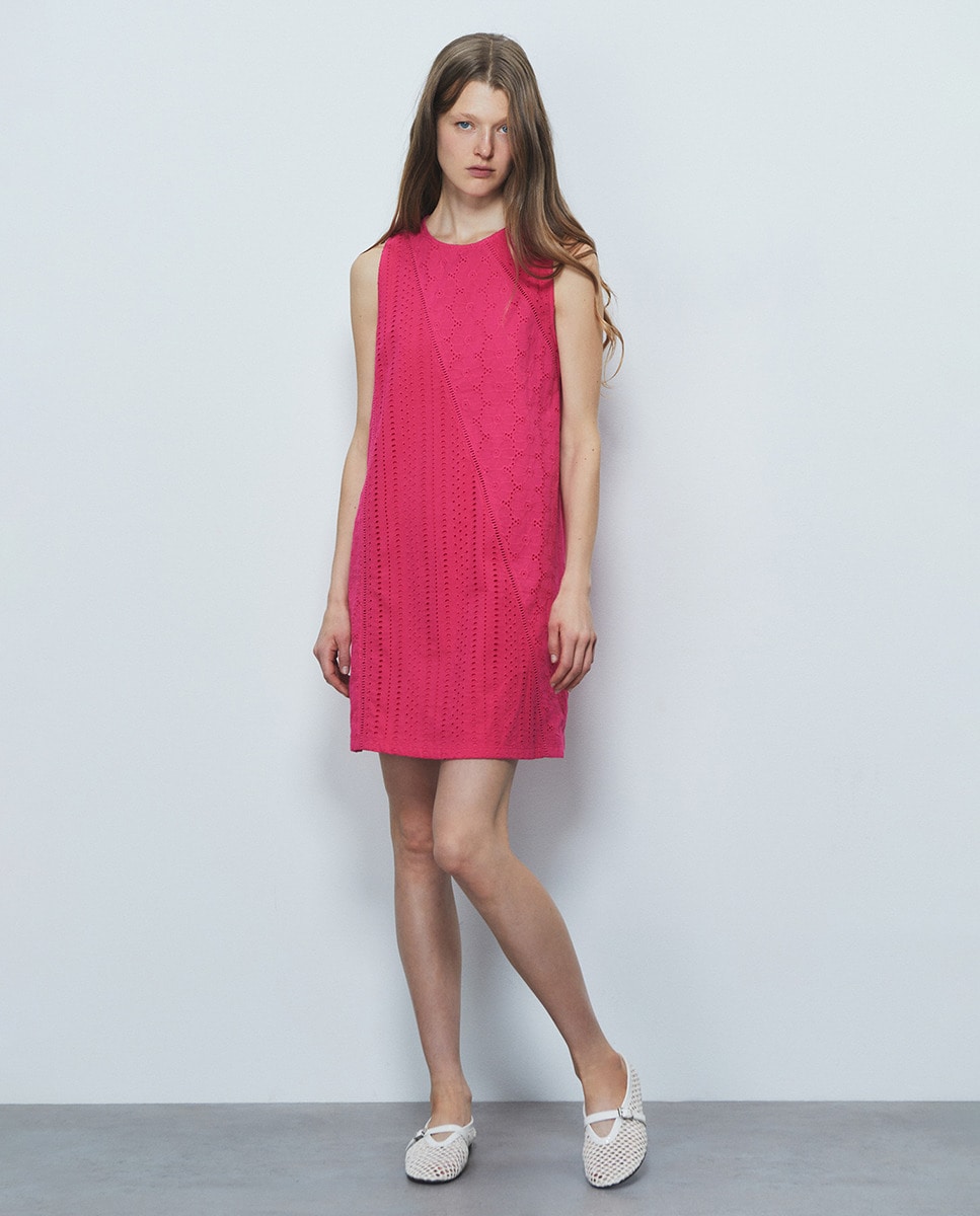 • Vestido mini schiffly de manga sisa. Algodón 100%.