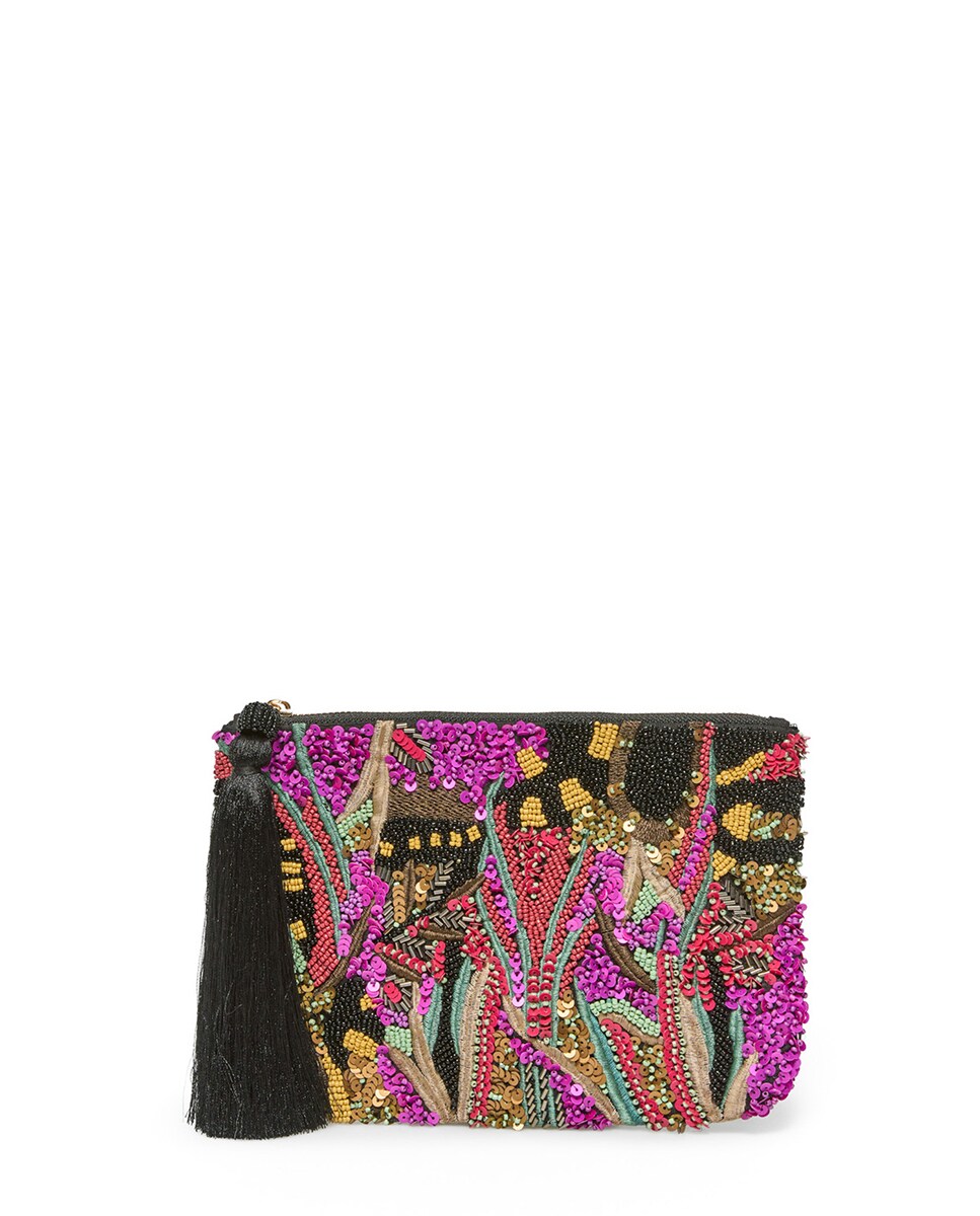 • Monedero bordado de cuentas con cierre de cremallera con borla