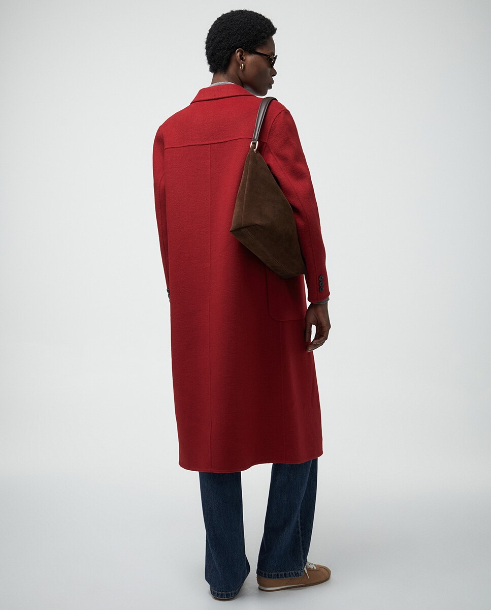 • Abrigo midi con cuello solapa y bolsillos. Cierre de botonadura doble