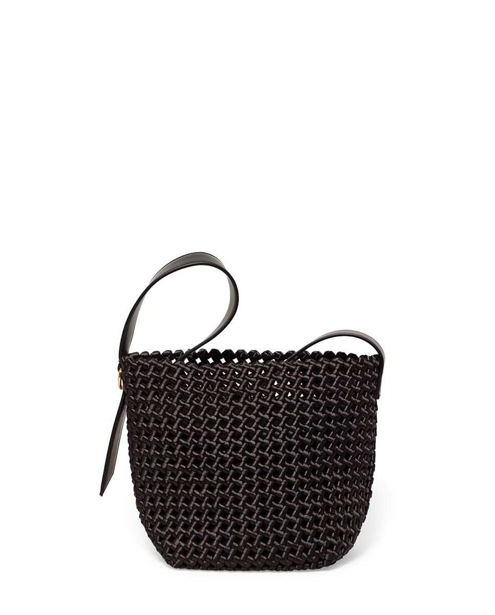 • Bolso estilo hobo en tejido trenzado con asa al hombro. Cierre de cremallera. 22 x 19 x 16cm