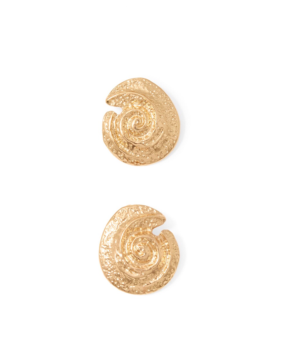 • Pendientes metálicos en forma de espiral. Cierre con tuerca