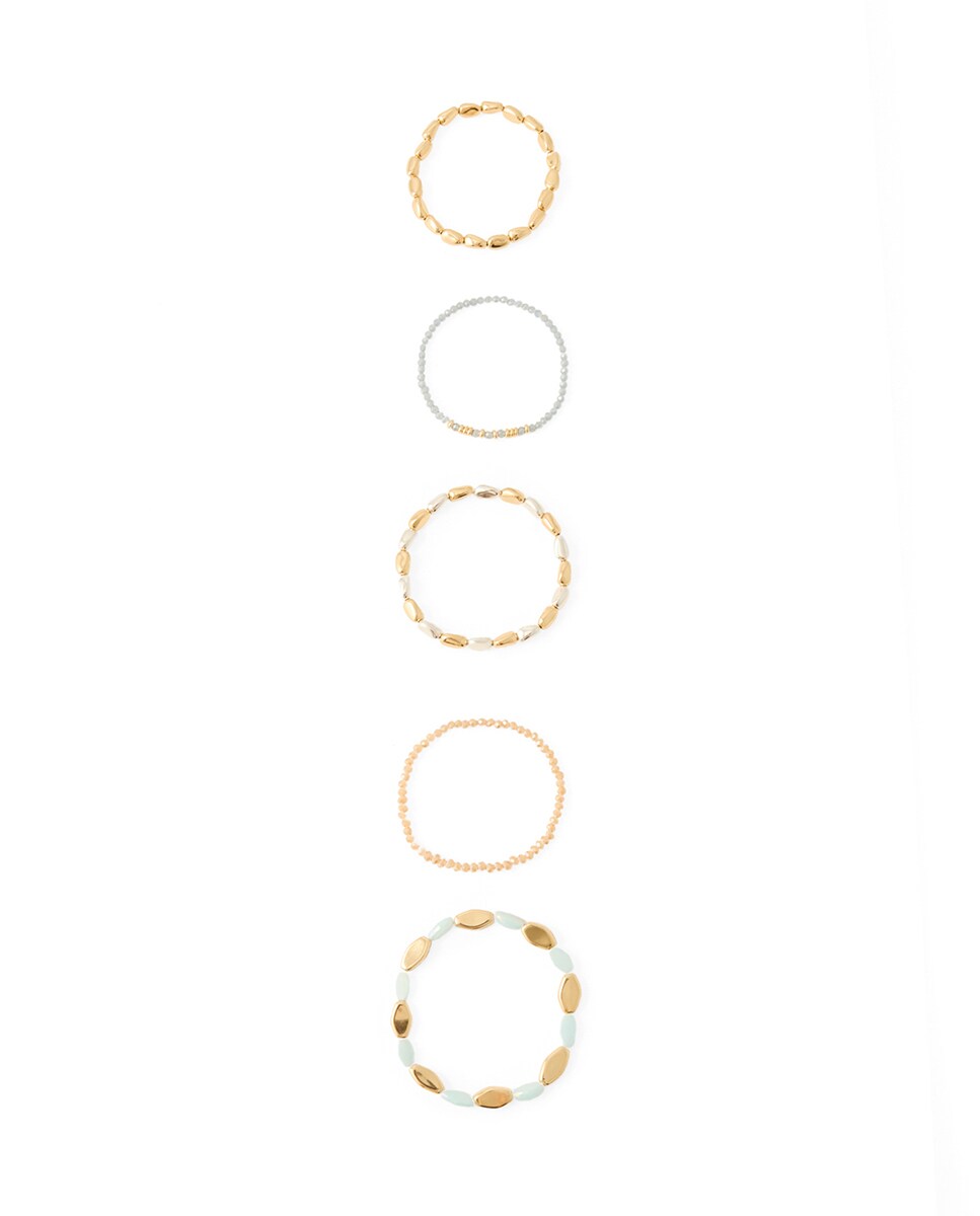 • Set de 5 pulseras elásticas metalizadas de cuentas
