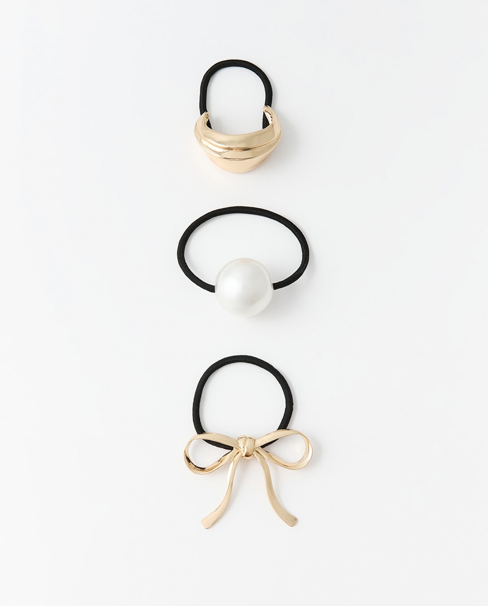 • Pack de tres coleteros con detalle de perla y lazo
