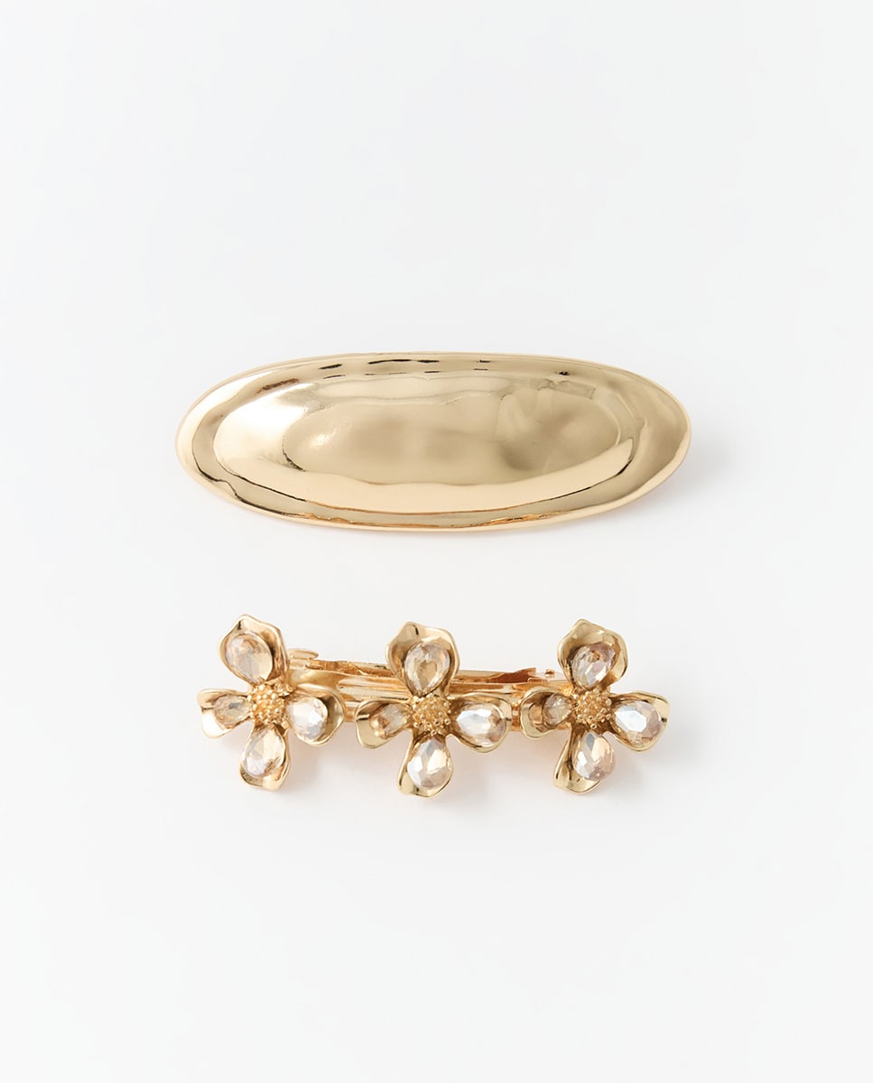 • Pack de dos pasadores pare el pelo en metal con detalle de flores