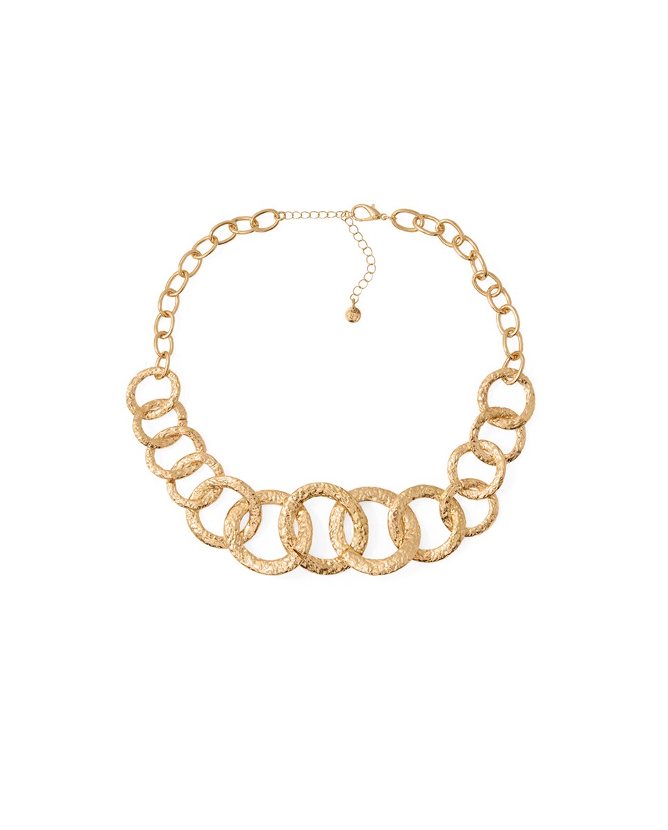 • Choker de metal con aros. Cierre de gancho y cadena