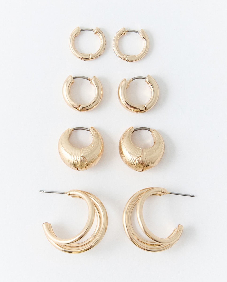 • Set de 4 aritos de metal. Cierre con tuerca