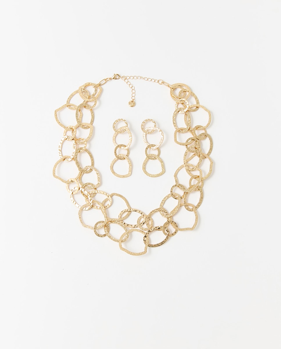 • Set de collar de doble cadena metalizado de arandelas y pendientes a conjunto