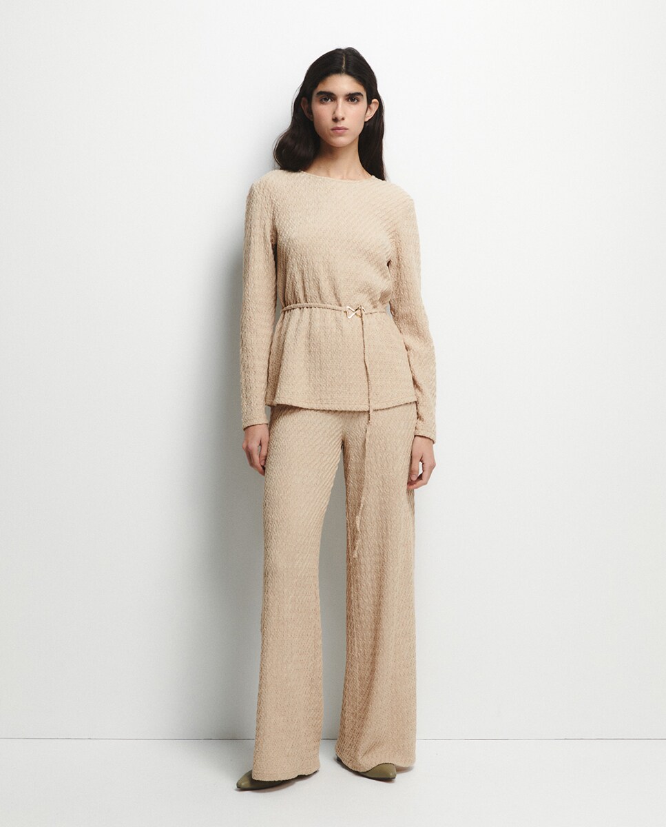 • Pantalón ancho con textura y goma en cintura