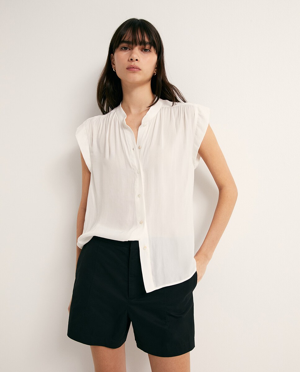 • Top de manga corta fluido con cierre de botones
