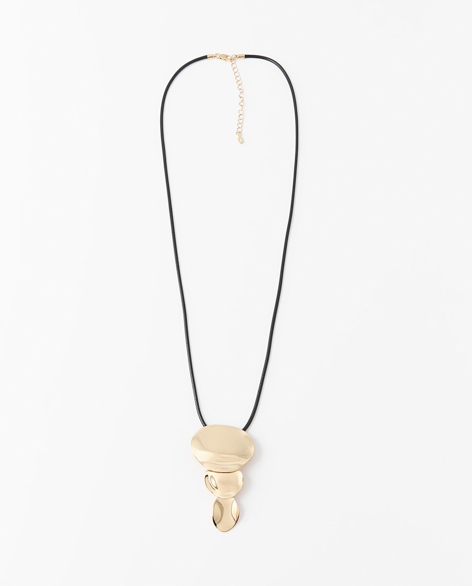 • Collar largo con cordón y colgante triple de piezas metalizadas
