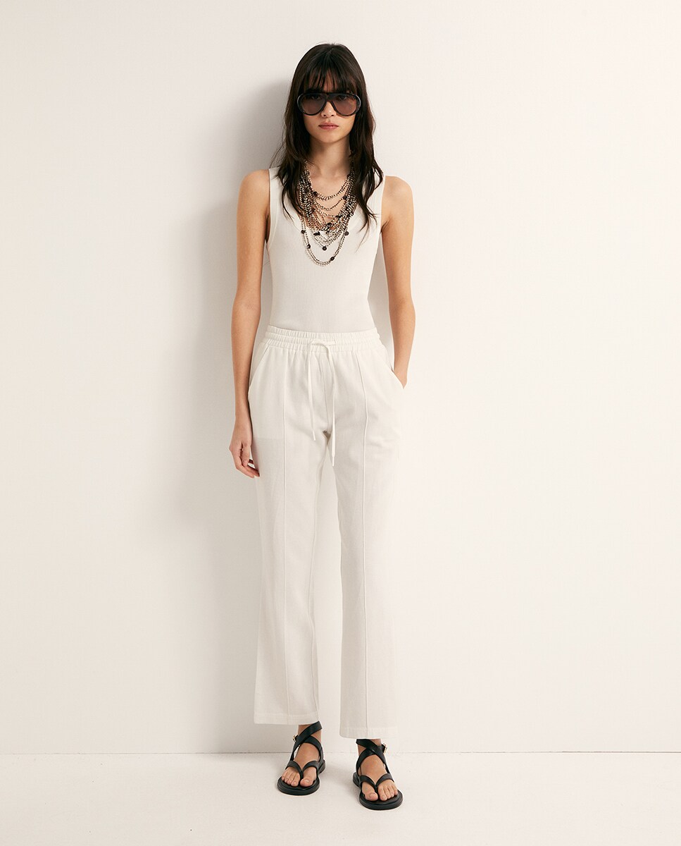 • Pantalón recto fluido con cordón en cintura y bolsillos laterales