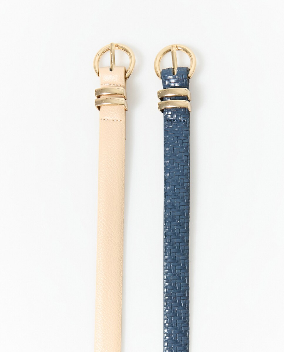 • Pack de dos cinturones con trabillas y hebilla en metal