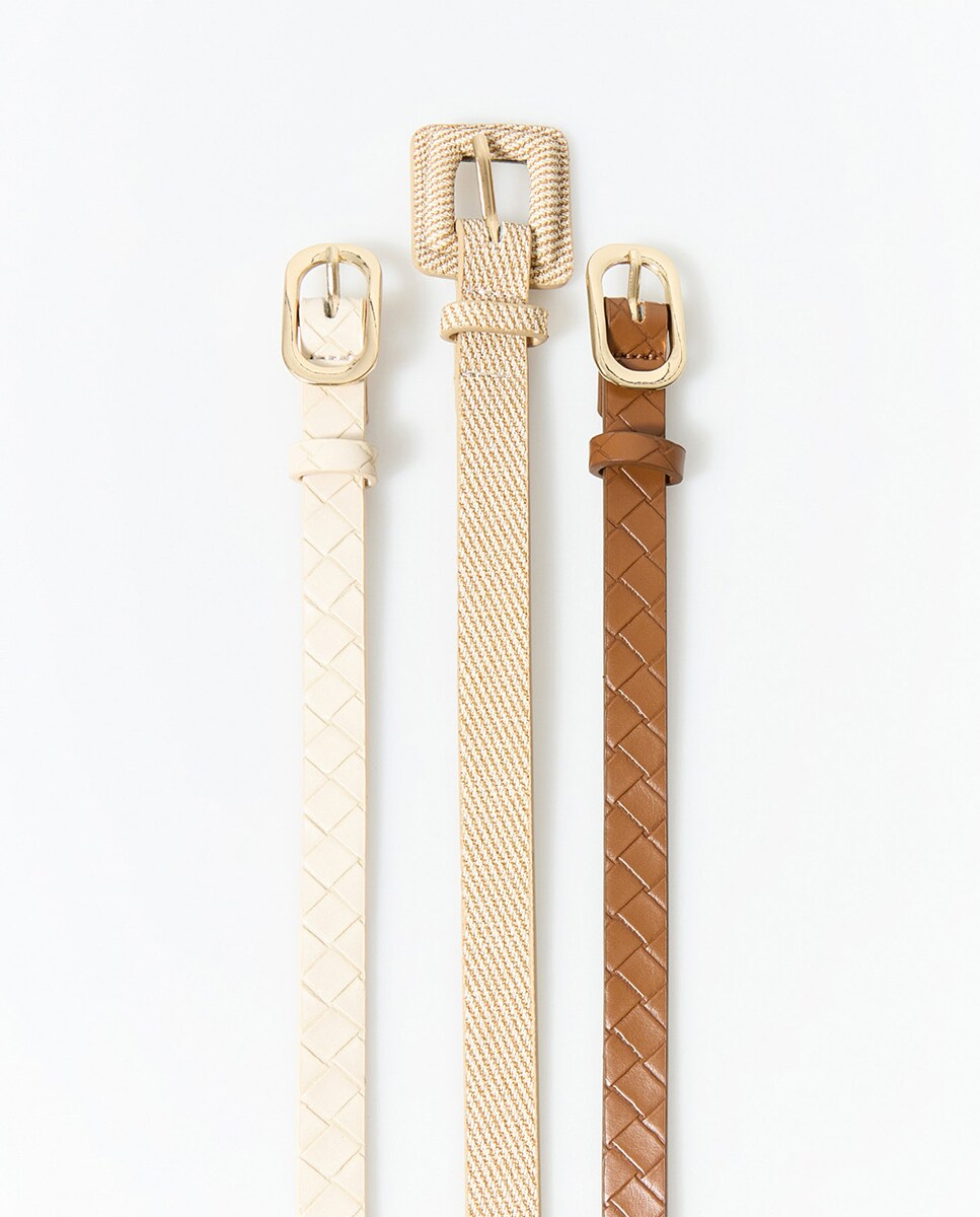 • Pack de tres cinturones trenzados con hebilla en metal y forrada
