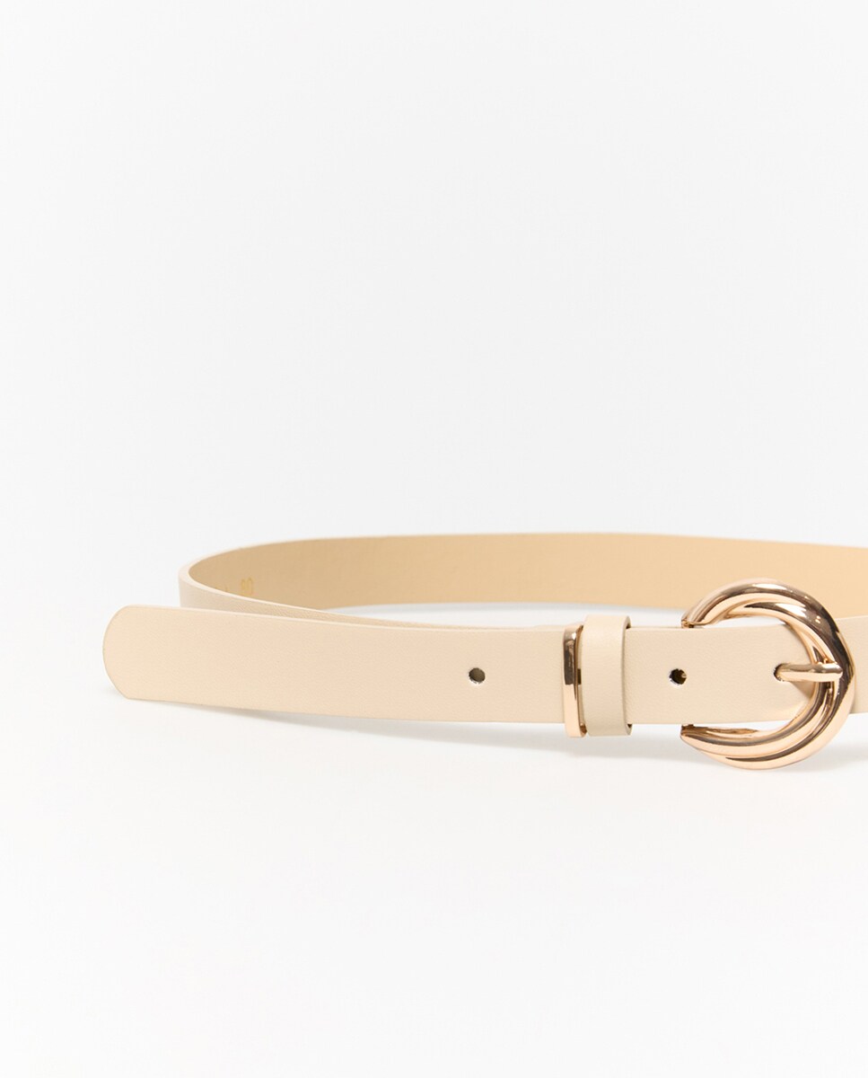 • Cinturón liso con hebilla metálica con textura