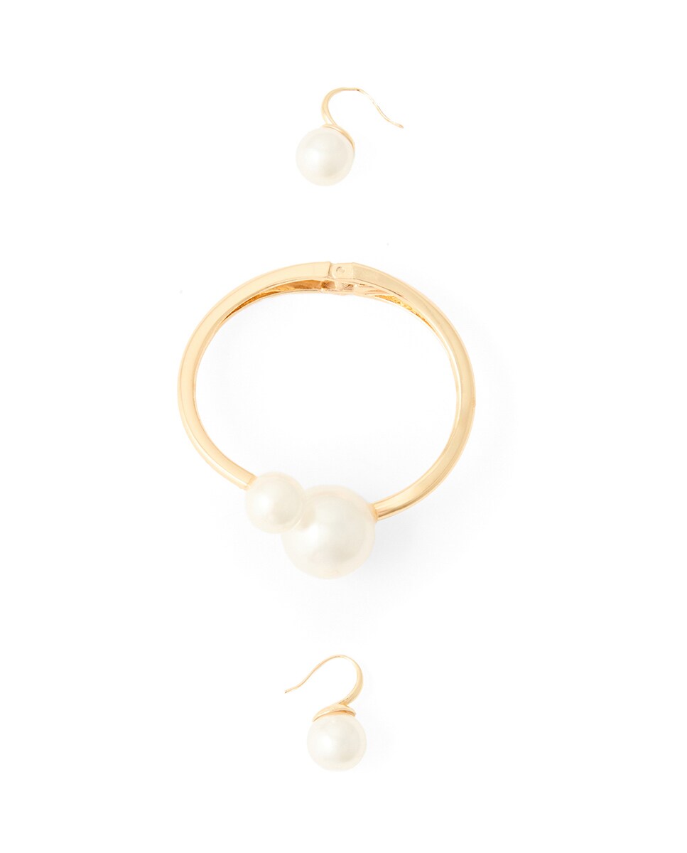 • Pack de pulsera y pendientes en metal con detalle de perla. Cierre de gancho