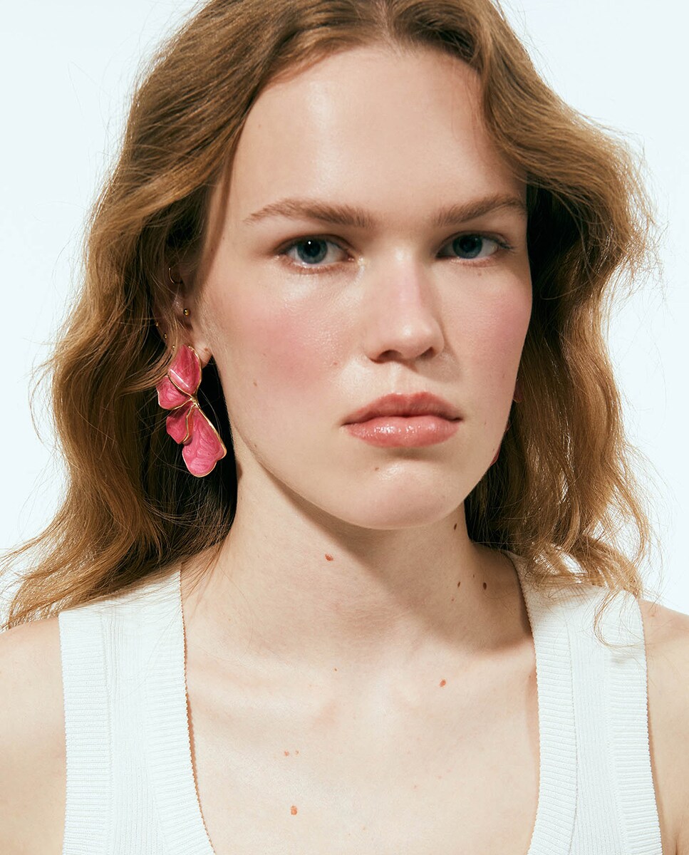 • Pendientes en forma de abanico esmaltado con cierre de tuerca