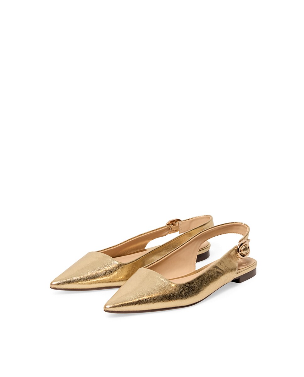 • Bailarina acabada en punta con talón al aire y cierre de hebilla. Tacón 1cm