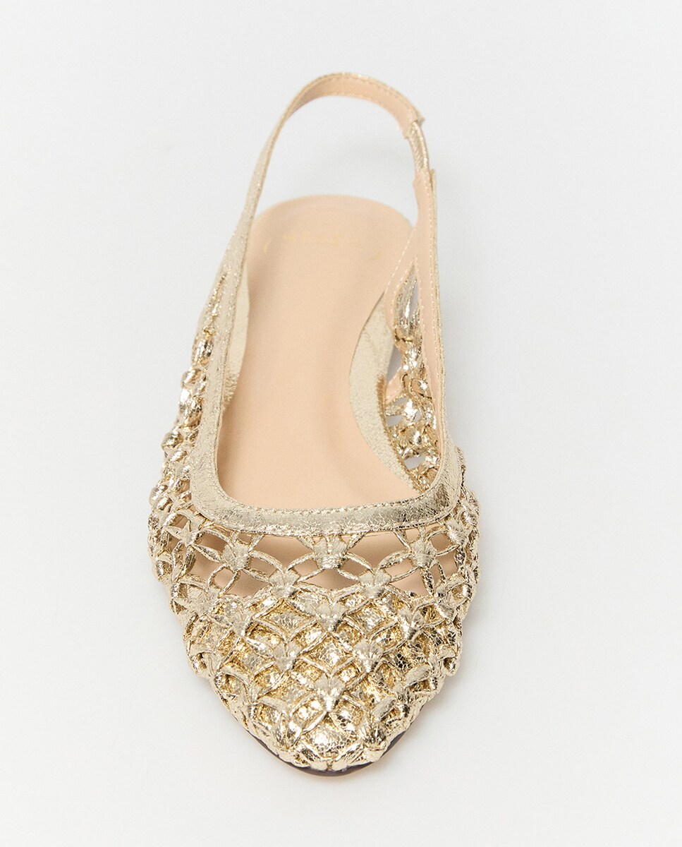 • Bailarina destalonada en metalizado. Trenzado con calados