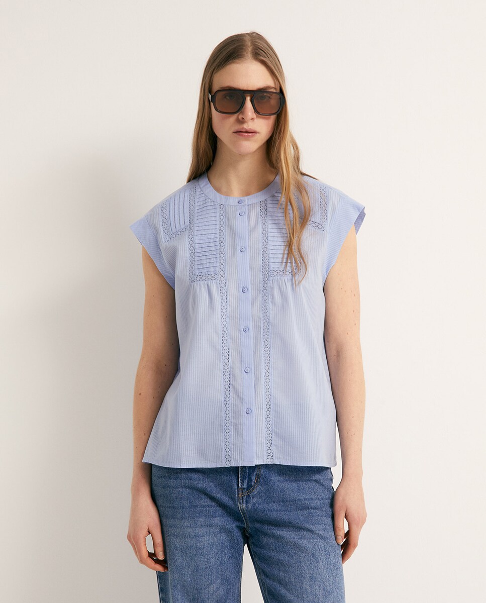 • Top sin mangas con detalle de puntilla. Cierre de botones. Algodón 100%