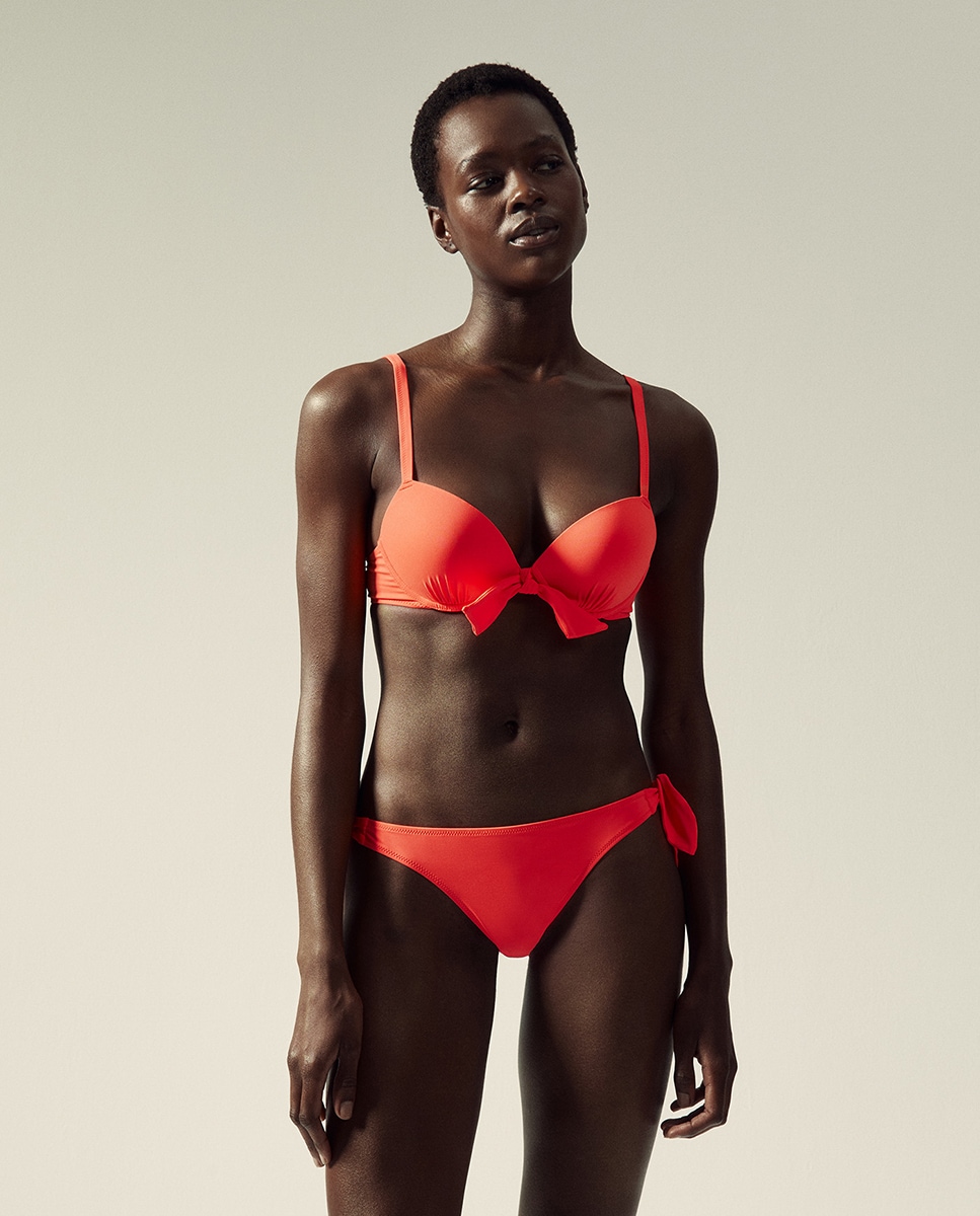 • Braguita en tejido liso con detalle de nudos en laterales