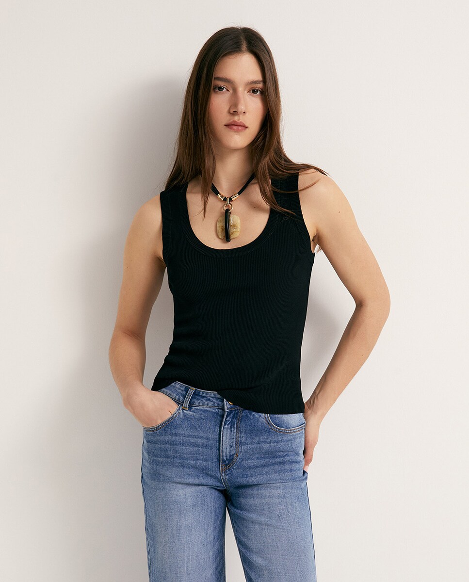 • Top con escote amplio y tirantes en canalé