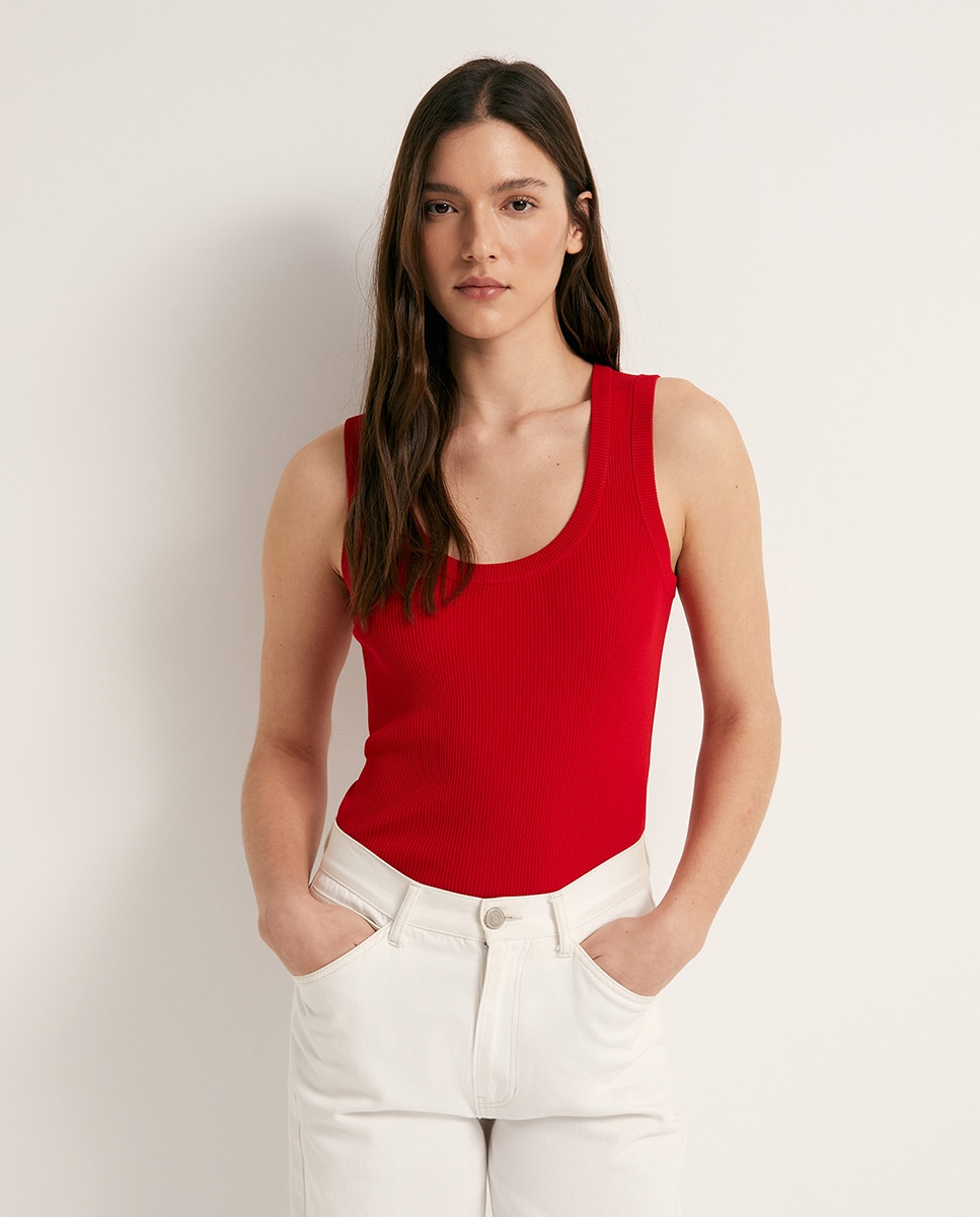 • Top con escote amplio y tirantes en canalé