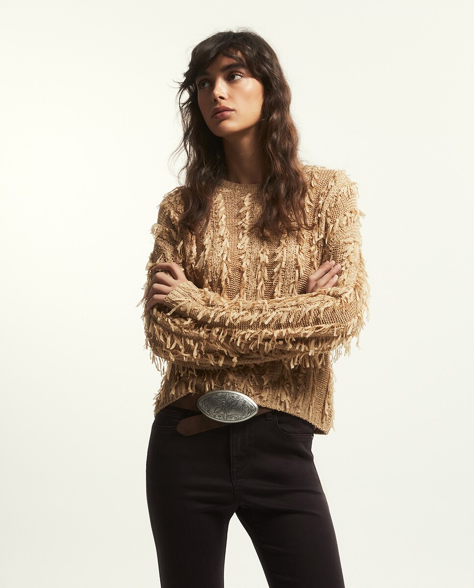• Jersey de punto con detalle de flecos en cintas