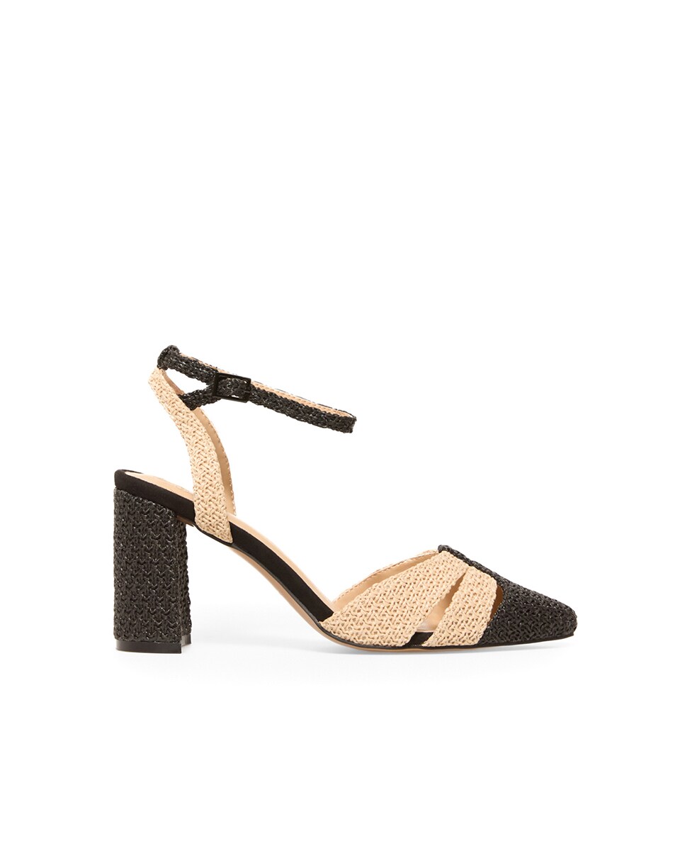 • Zapato tacón bicolor de rafia con pulsera al tobillo. Tacón de 8,5 cm