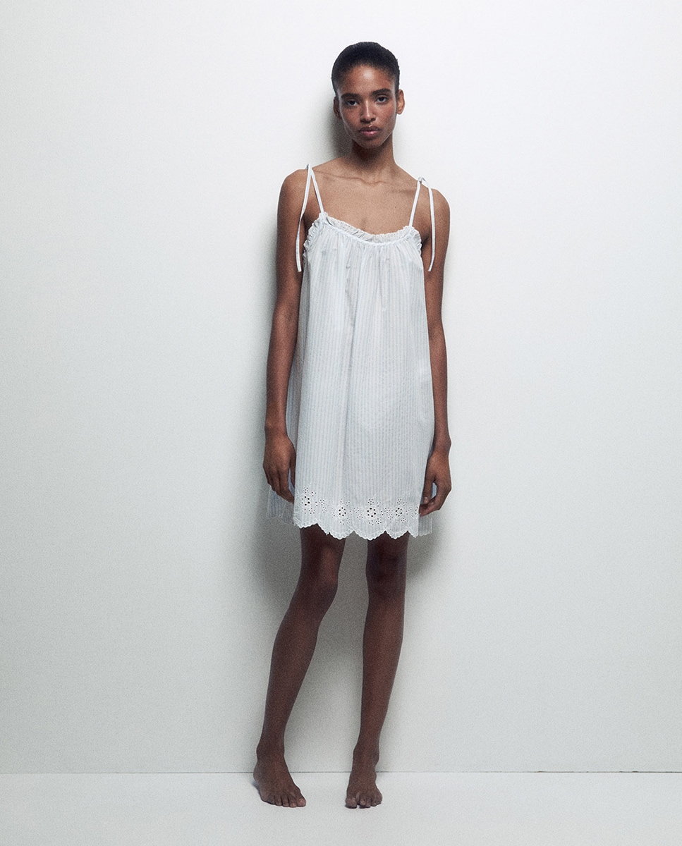 • Camisón estampado de tirantes con detalle de puntilla. Algodón 100%