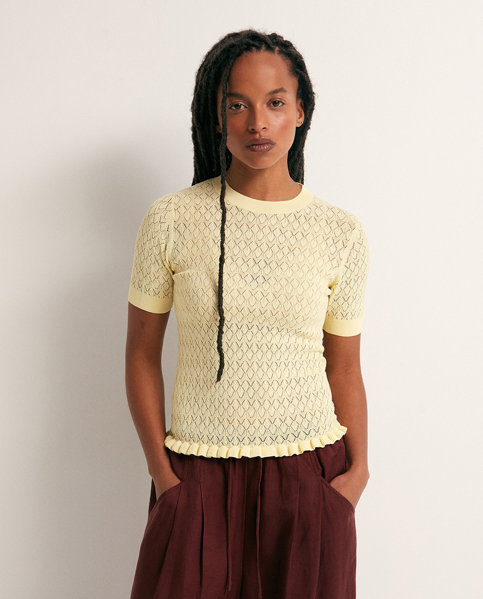 • Top calado manga corta con cuello caja