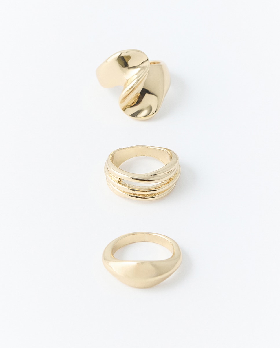 • Pack de tres anillos metalizados