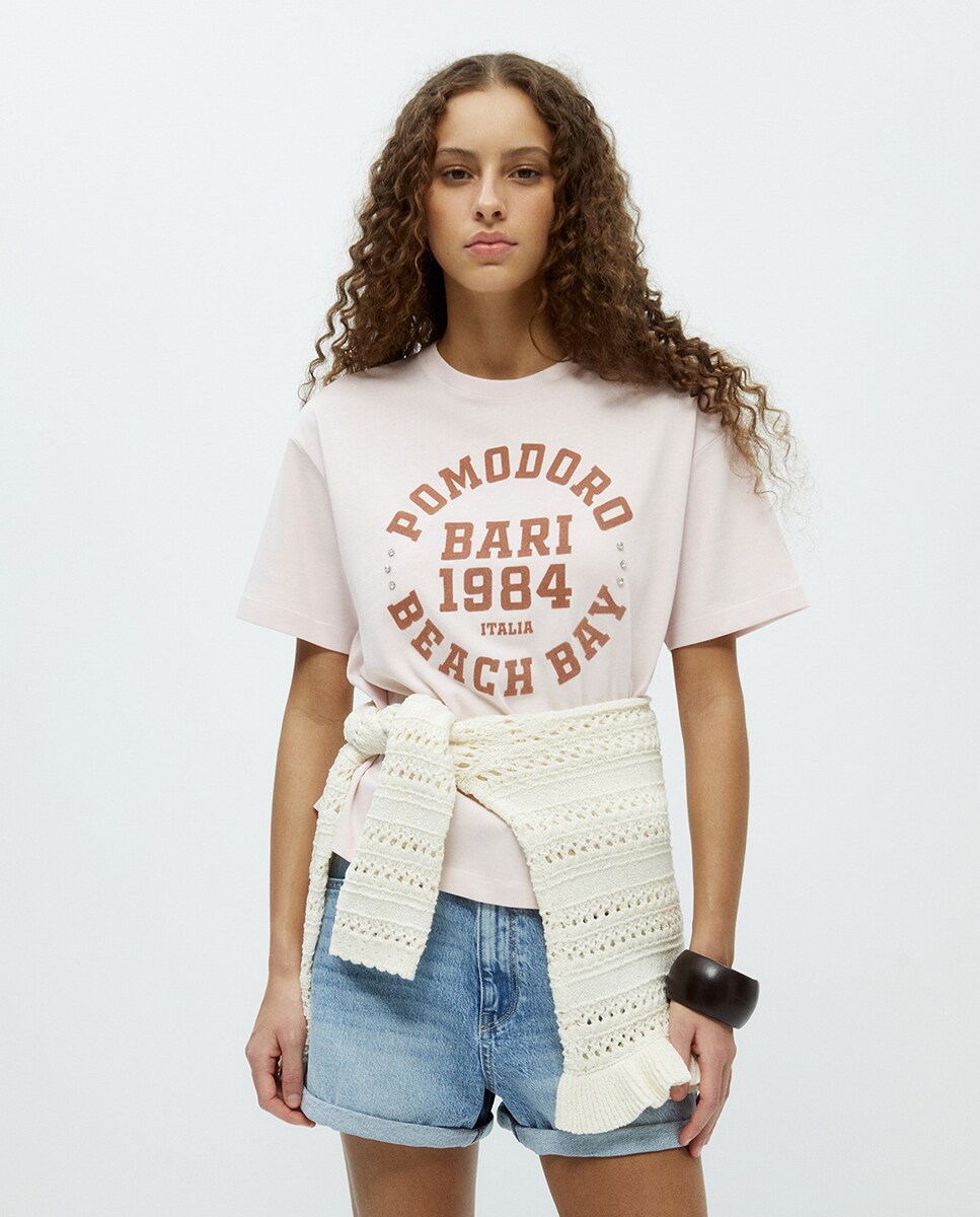 • Camiseta con cuello redondo y manga corta con detalle de gráfico y brillos. Algodón 100%