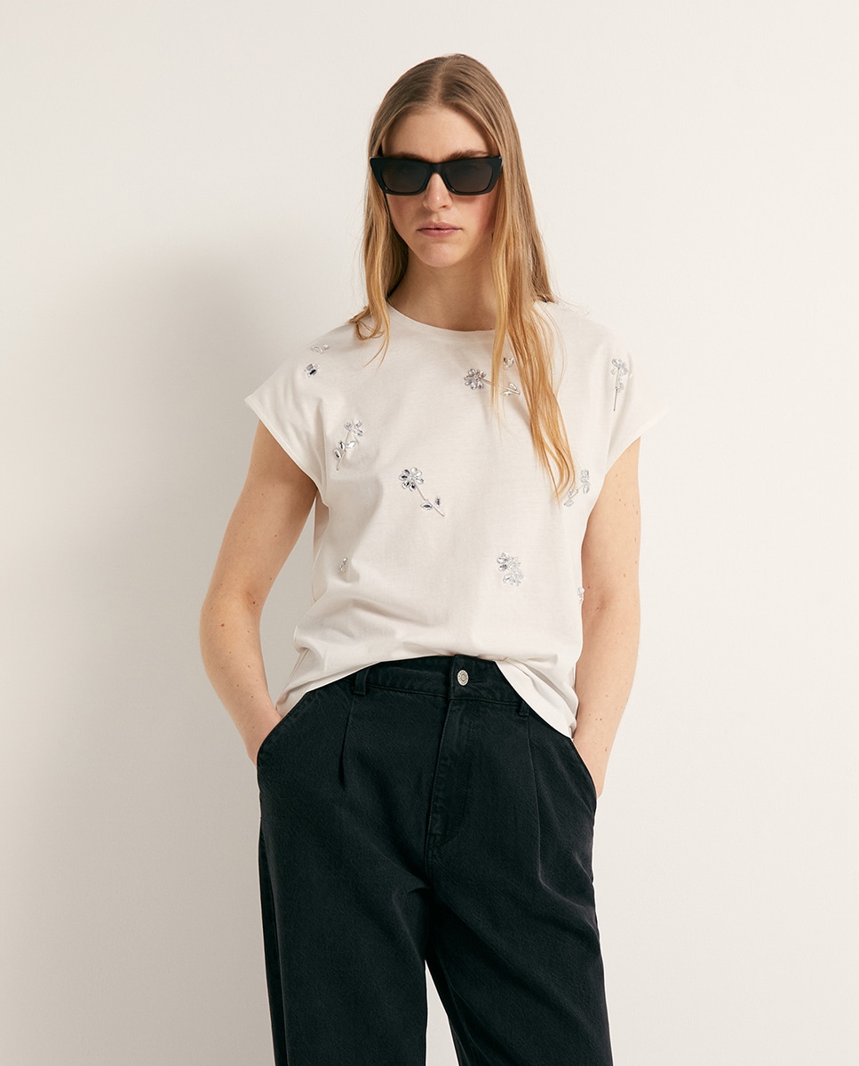 • Camiseta de manga corta con detalle de brillos. Algodón 100%