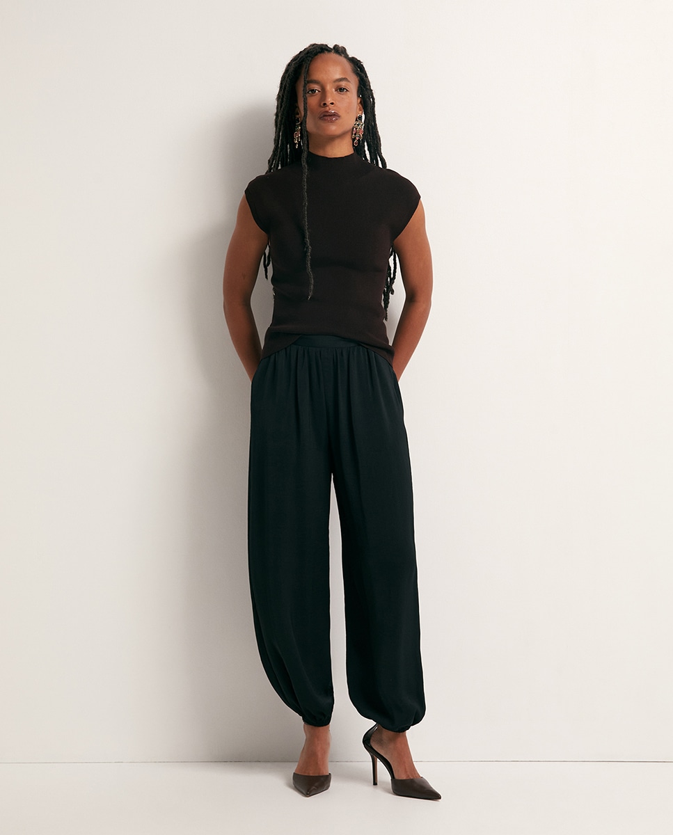 • Pantalón fluido bombacho. Bolsillos laterales