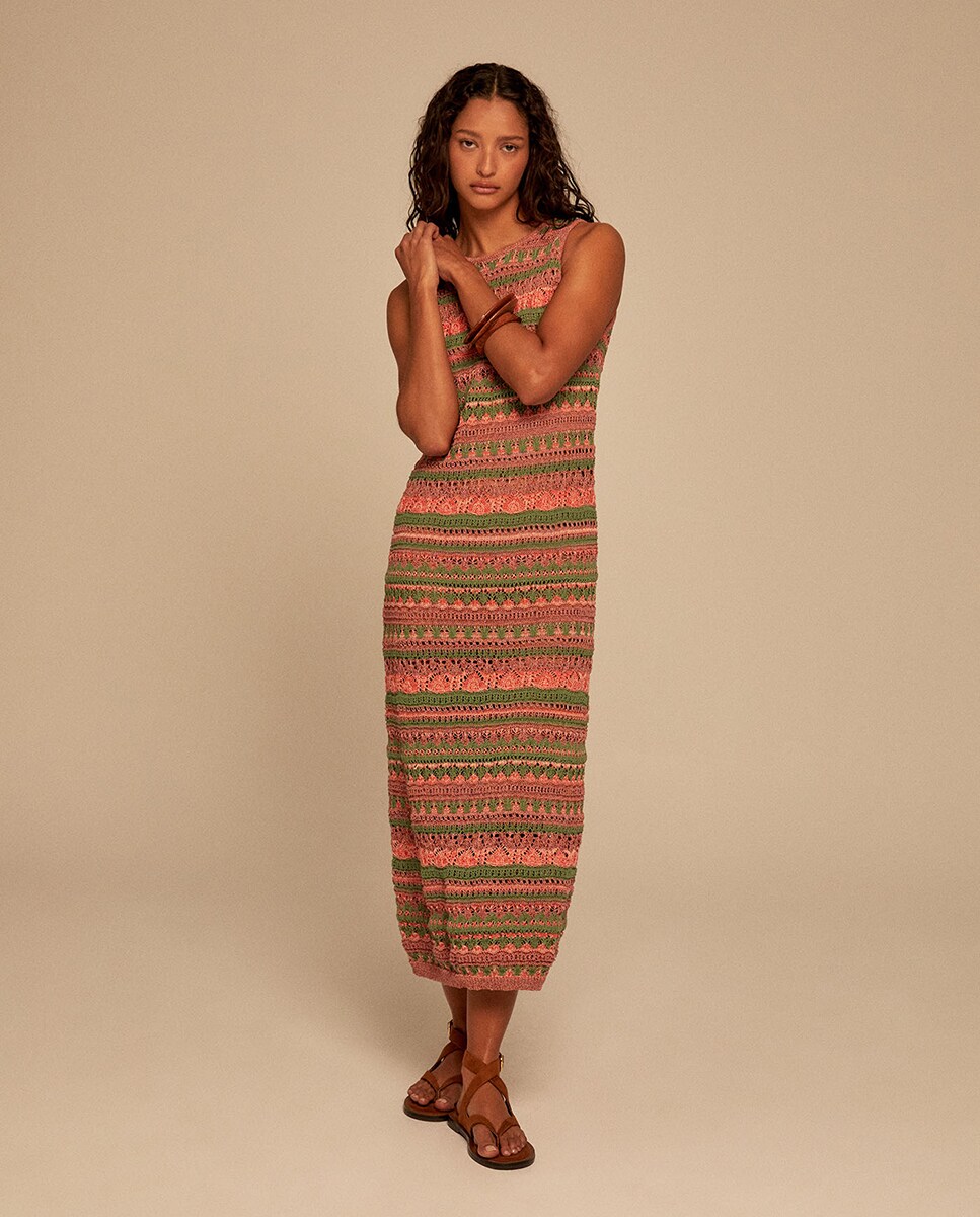 • Vestido con cuello redondo y sin mangas de punto multicolor